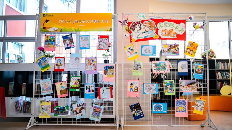 《亲爱的木果》作者夏桨与师生代表共同登上舞台,学生们纷纷展示自己为《亲爱的木果》绘制的插画作品,分享自己的阅读体会,成为在上海市第一师范学校附属小学举办的第四届“陈伯吹新儿童文学创作大赛”颁奖活动上的温暖一幕。